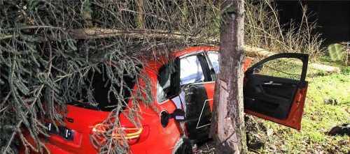 Auto rauscht in Tanne und wird von dem meterhohen Baum begraben: Insassen nur leicht verletzt
