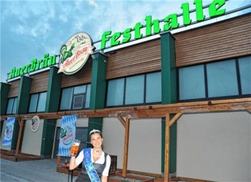Als Miss Herbstfest wird Anna Birklein Rosenheims fünfter Jahreszeit Glanzlichter aufsetzen. Am Mittwoch brachte sie schon mal den neuen Schriftzug der Inntalhalle zum Leuchten: Auerbräu-Festhalle heißt das Gebäude nun. Anna Birklein stieß auf die neuen Leuchtelemente mit dem Auerbräu-Logo in der Mi