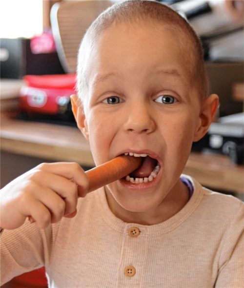 Maxi ist ein fröhliches Kind. Wenn ihn nicht gerade eine belastende Chemotherapie appetitlos macht, isst er sehr gerne Wiener.Fotos Hadersbeck