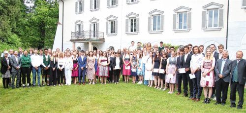67 Schüler haben ihr Abitur an einem der Gymnasien im Landkreis Rosenheim mit einem Notendurchschnitt von 1,5 und besser abgeschlossen. Der stellvertretende Landrat Josef Huber (rechts) ehrte sie bei einem Empfang auf Schloss Hartmannsberg. In Anwesenheit aller Schulleiter ermutigte Huber die jungen