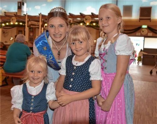 Wo immer Amelie Frei, die Miss Herbstfest 2023, auch auftaucht, bringt sie die Kinderaugen zum Leuchten. Und dann wird natürlich ein Foto gemacht mit ihren kleinen Fans. Hier sind es die Geschwister Maria, Lucia und Elisabeth Plank (von links) aus Eggstätt. Und was wollen die jungen Damen von der Mi