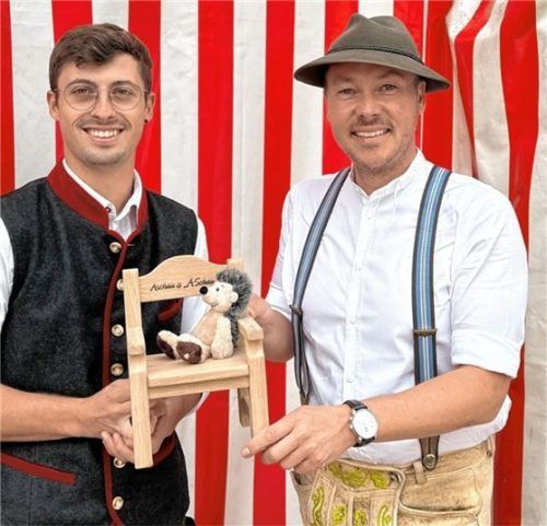 Da strahlt der Wiesnigel Ignaz. Jetzt kann er sich auf dem Herbstfest mit OVB-Reporter Manuel Hinmüller und Aschaus Tourismus-Chef Herbert Reiter (rechts) „gmiatlich zamhocka“. Gemäß einer Tradition hat Reiter dem Ignaz wieder eine besondere Freude mit einem ausgefallenen Mitbringsel bereitet. Heuer