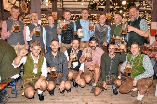 90er- und 2000er-Jahren anzustoßen. Der Wiesnigel Ignaz wollte dabei von Stefan Mayr (Mitte, blaues Hemd) wissen, ob seine alte Sechzig