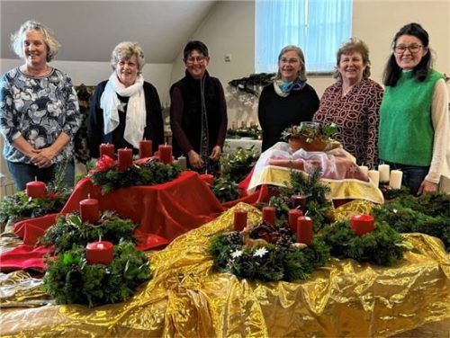Die Frauengemeinschaft Tuntenhausen (KFD) hat für ihren Adventsbasar fleißig gesteckt, gebastelt und geschmückt. Aus dem Verkaufserlös der wunderschönen Gestecke und Kränze spendet der Verein 200 Euro für die OVB-Weihnachtsaktion. Unser Foto zeigt die Vorsitzende Rosa Marx (Zweite von rechts) mit ih