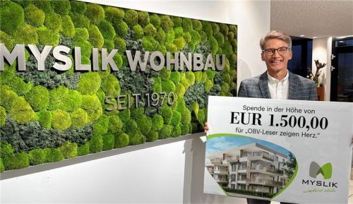 Die MYSLIK Wohnbau Bayern aus Rosenheim, bekannt für ihr neues Wohnprojekt am Tor zum Stocket, beteiligt sich mit 1500 Euro an der Weihnachtsaktion „OVB-Leser zeigen Herz“. Geschäftsführer Klaus Mertens wünscht im Namen der Firma allen Leserinnen und Lesern besinnliche und frohe Weihnachten.Foto re