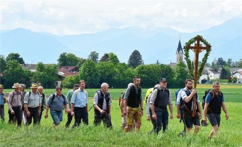 Seit nahezu 200 Jahren ziehen im Marienmonat Mai Fußwallfahrer aus dem Landkreis Rosenheim und dem Oberland von der Schloßberger Kirche St. Georg zur Basilika in Altötting. Über 70 Wallfahrer machten sich heuer auf den Weg. In zwei Tagesmärschen geht es zu Fuß zur Mutter Gottes. Die Wallfahrt beruht