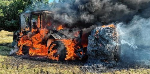 Radlader fängt Feuer: Vollbrand auf Feld nahe Albaching