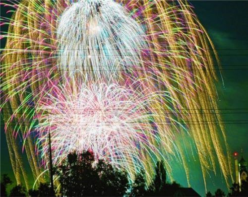 Farbenfroher Höhepunkt wie immer – das Wiesn-Feuerwerk, hier vom Rosenheimer Süden aus betrachtet, von der Brücke über die Bahn auf der Miesbacher Straße. Rechts er- kennbar: St. Nikolauskirche und Hangover-Turm. Foto ziegler