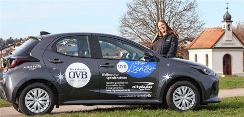 Mit aktuell über 146.000 Euro geht es bei der OVB-Weihnachtsspendenaktion – sie steht 2025 unter der neuen Dachmarke HeimatLichter – jetzt auf die 200.000er-Marke zu. Zu gewinnen gibt es dabei diesen flotten schwarzen Flitzer. Den Wagen – ein Mazda 2 Hybrid im Wert von rund 25.000 Euro – hat City-Au