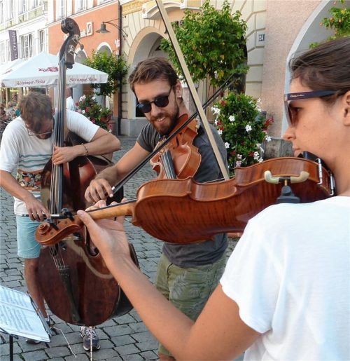Vor allem mit Stücken von Mozart erfreute dieses Trio Passanten auf dem Max-Josefs-Platz. „Streetree“, so nennen sich die drei, war schon öfter in Rosenheim. Die drei schätzen die Fußgängerzone als lohnendes Pflaster. Die Zuhörer zeigten sich auch diesmal wieder spendabel und ließen Münzen in den ge
