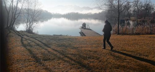 Etwas unentschlossen zeigt sich das Wetter zwischen den Festtagen: Es ist weder richtig kalt noch warm, meist trüb, hin und wieder gibt es ein paar Tropfen Regen, kaum Schnee. Wenn die Bergwelt aus dem Morgennebel auftaucht, wie hier am Happinger See, geht jedoch im Herzen die Sonne auf. Viele haben