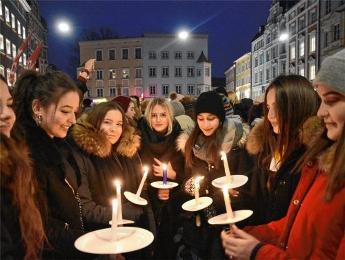 „Ich kann gar nicht fassen, dass so viele Leute gekommen sind“, strahlte Vanessa (16). Zusammen mit ihren Ethiklehrerinnen organisierten die zehnten Klassen der städtischen Realschule für Mädchen eine Lichterkette aus Kerzen für ein tolerantes und weltoffenes Rosenheim. Rund 300 Menschen versammelte