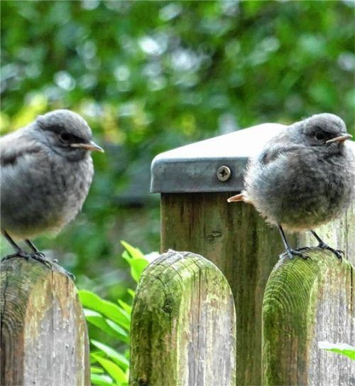 Mit dieser Überraschung hatte Paul Weiß wohl nicht gerechnet. Vor einigen Tagen besuchten den Rosenheimer diese vier frisch geschlüpften Hausrotschwänze. Neugierig beobachten die Vögel vom Gartenzaun aus ihre Umgebung. Während zwei noch etwas grummelig schauten, plusterte sich ein anderer in seiner