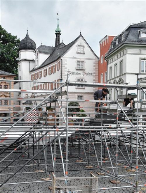 Freitag feiert „Die Schwedenplag“ Premiere. Die Bühne für das historische Stadtspiel auf dem Ludwigsplatz zwischen Nikolauskirche und Mittertor steht bereits. Sie bietet Platz für 390 Besucher. Jetzt heißt es: hoffen auf gutes Wetter, denn das Stadtspiel ist eine Freilichtproduktion des Theaters Ros