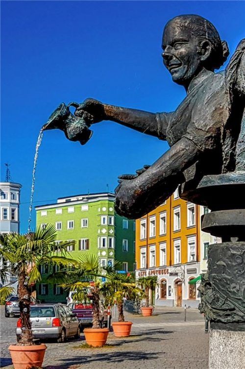 Bei der Hitze dieses Jahr waren sogar die Palmen am Ludwigsplatz durstig. Gut, dass die Brunnenfrau am Grünen Markt ein Einsehen hatte und die Stadtgärtnerei beim Gießen unterstützte. Diese Aufgabe übernimmt sie, wie man sieht, nach wie vor in bester Laune. Bald ist sie aber nicht mehr notwendig: Da