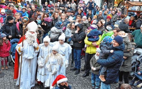 Der Nikolaus kam gestern in Rosenheim vorbei: Voller Erwartung standen die Kinder bereits eine halbe Stunde vor seinem Eintreffen vor dem Podium auf dem Christkindlmarkt. Dann kam der Heilige in der Kutsche vorgefahren, begleitet vom Krampus und drei Engeln. „Ich habe beim lieben Gott dafür gesorgt,