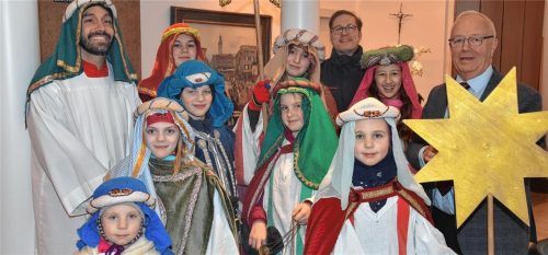 Gemeinsam mit Kaplan Michael Engel von der Pfarrei St. Nikolaus besuchten Caspar, Melchior und Balthasar sowie einige Sternsinger unter anderem das Rathaus. Die als Sternsinger verkleideten Jugendlichen erinnern mit ihrer Aktion nicht nur an das Heilsgeschehen, sie sammeln auch für Not leidende Kind