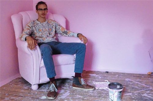 Pause im „pinken Wohnzimmer“: Luca Thiel, Gründer und Organisator der Veranstaltung „Künstler-Mixtape“.