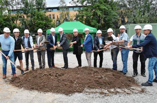 Kräftig zum Spaten gegriffen haben Rosenheims Oberbürgermeisterin Gabriele Bauer (Mitte) und Vertreter der Dekra Rosenheim, beim Spatenstich für den Bau einer neuen Niederlassung in Rosenheim. Im Gewerbegebiet Am Oberfeld soll das Gebäude entstehen und dann den Standort an der Klepperstraße ersetzen
