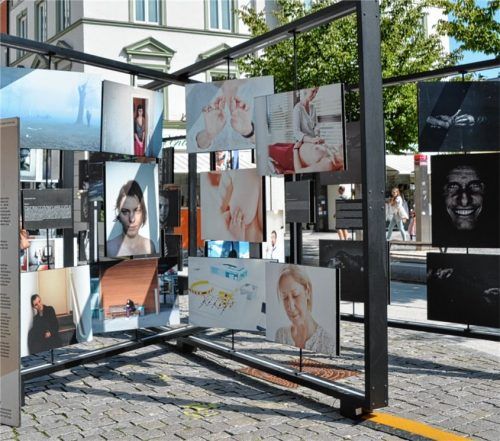 Schwarz-Weiß-Bilder, emotionale Momentaufnahmen und klassische Reportagereihen: Die Fotos auf dem Ludwigsplatz mit dem imposanten Metallgestell und dem drehbaren Rahmen stechen sofort ins Auge. Seit dem 30. Juli ist die Ausstellung der „Berufsgenossenschaft für Gesundheit und Wohlfahrtspflege“ (BGW)