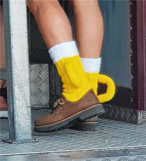 Ein klares Bekenntnis zum goldenen Gerstensaft trägt dieser Mann als Socken. Sie haben die Form einer Mass Bier mit Schaumkrone – inklusive Henkel. Für dieses ungewöhnliche Motiv, eingesandt von Sabine Maurer aus Prutting, gibt es zwei Bier- und eine Hendlmarke, die heute, Montag, von 10 bis 18 Uhr