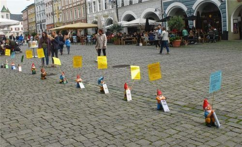Die Besucher der Rosenheimer Innenstadt staunten nicht schlecht, als ihnen am Samstag eine Horde Gartenzwerge Schilder mit Hinweisen zu verschiedenen Selbsthilfegruppen in der Region entgegenhielten. An zwei Ständen konnten sich die Passanten darüber informieren, dass es insgesamt 121 Selbsthilfegru