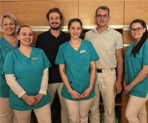 Die Praxis für Oralchirurgie und Implantologie Dr. Christian Wenz (Zweiter von rechts) aus Rosenheim überreichte dem Diakonischen Werk Rosenheim eine Spende über 2000 Euro, ermöglicht aus Altgoldspenden ihrer Patienten. Ein Teil des Betrags ging an die Kindertageseinrichtung „Villa Kunterbunt“. Zur