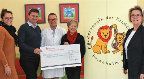 Auch in diesem Jahr durften die Vertreterinnen des Fördervereins der Kinderklinik, Vorsitzende Mihaela Hammer (rechts), Kassierin Gabriele Schulz (Zweite von rechts), Zweite Vorsitzende Jasmin Harre-Göhsl (links) und Chefarzt der Klinik für Kinder- und Jugendmedizin Dr. Torsten Uhlig (Mitte) mit gro
