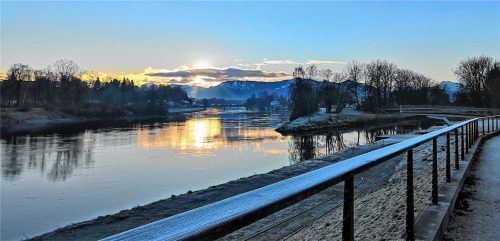 Am sogenannten Innspitz in Rosenheim, wo die Flüsse Inn und Mangfall zusammenlaufen, lohnt es sich, morgens den Blick Richtung Bergwelt zu richten. Wenn die Sonne langsam hinter den Gipfeln aufsteigt, dann erwacht auch die Stadt zum Leben. Und wie kann man schöner in den Tag starten, als bei einem a