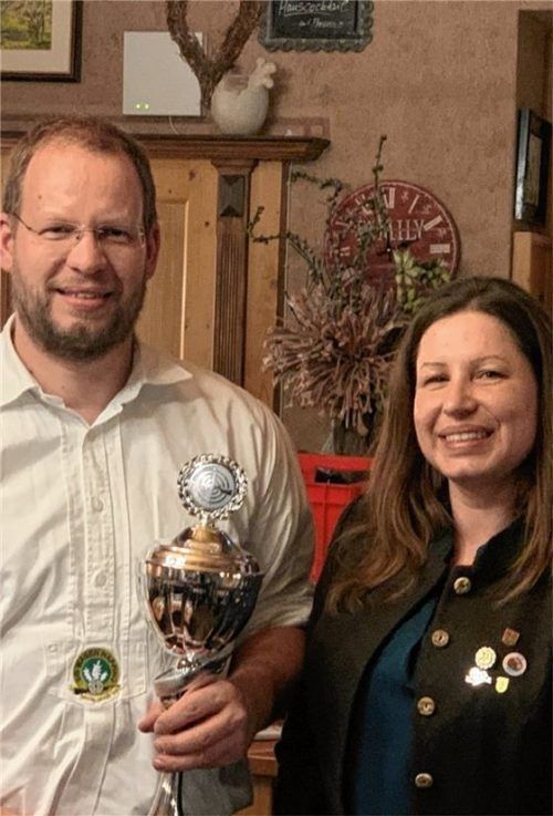 Beim Jubiläumsschießen der Schützengesellschaft Wasen Happing hat es neben vielen Sachpreisen auch Pokale gegeben. Am Ende hatte Josef Moosner die Nase vorn. Schützenmeisterin Michaela Huf überreichte ihm den Pokal. Im Anschluss gab es ein geselliges Beisammensein und eine Bildervorführung aus den v
