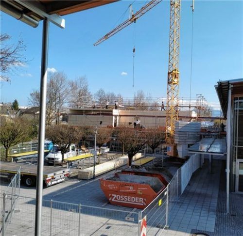 An der Grundschule Erlenau haben die Bauarbeiten zur Aufstockung eines Pavillons begonnen. Durch diese Maßnahme werden zwei neue Klassenzimmer sowie ein Gruppenraum geschaffen. Zusätzlich wird das Gebäude mit einem außen liegenden Aufzug barrierefrei ausgebaut. Foto Stadt Rosenheim