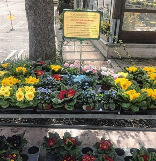 Für einen kleinen Lichtblick sorgte die Gärtnerei Prentl vor einigen Tagen in Rosenheim. Weil auch sie ihr Geschäft aufgrund der Corona-Pandemie schließen mussten, verschenkten sie ihre Blumen an „Nachbarn, Freunde, Kunden, Spaziergänger und Gassi-Geher.“ Auf dem kleinen Schild stand außerdem: „Eine
