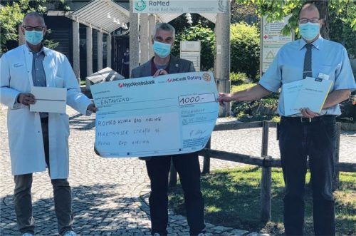 Der Rotary Club Rosenheim unterstützt die Romed-Klinik Bad Aibling mit einer Spende von 1000 Euro. „Die Spende werden wir in Tablets investieren, um unseren Patienten die Kommunikation mit ihren Angehörigen zu ermöglichen“ sagt der kaufmännische Leiter der Klinik Erhard Marburger. Auch die Romed-Kli