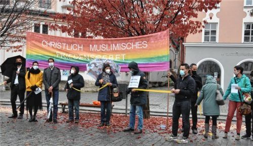 Unter dem Motto „Leben ohne Ausgrenzung“ hat gestern ein christlich-muslimisches Friedensgebet am Ludwigsplatz stattgefunden. Schweigend standen 20 Teilnehmer nebeneinander, setzten, gemeinsam mit Oberbürgermeister Andreas März und seiner Frau Andrea, ein Zeichen für ein Leben ohne Ausgrenzung. Mit