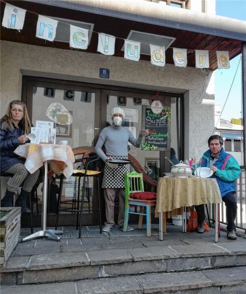 Für ihn sei die Situation unerträglich: „Dieses scheibchenweise Verlängern der Corona-Beschränkungen – ohne konkrete Vorschläge, wie man künftig lernt, mit Corona zu leben“, klagt der Betreiber des Rosenheimer Cafés „includere“, Olaf Heck (Mitte). Er beteiligte sich gestern am „stillen Protest“ des