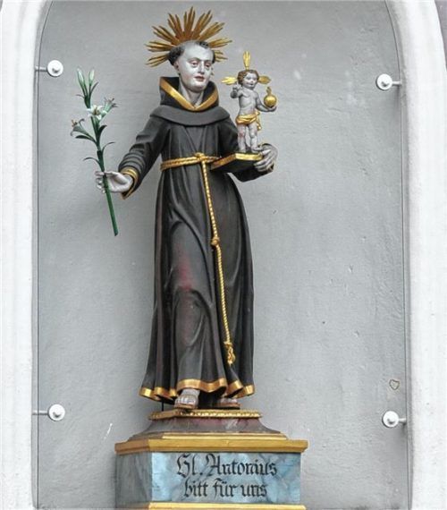 Den heiligen Antonius von Padua, dessen Gedenktag der 13. Juni ist, gibt es im Raum Rosenheim in zahlreichen Darstellungen. Der Heilige wird meist mit Buch, Lilie, Kreuz und Jesuskind dargestellt. Er wird für das Wiederauffinden verlorener Gegenstände angerufen. Außerdem ist er Patron der Eheleute,