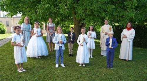 Der schöne und wichtige Satz von Jesus „Vertrau mir – ich bin da“, wurde den Erstkommunionkindern von Oberwöhr bei ihrer Feier mitgegeben. Auf ihr erstes Fest am Altar vorbereitet wurden sie von der Gemeindereferentin Maria Leutgäb. Zusammen mit Pfarrvikar Mathias Klein-Heßling freute sich die Pfarr