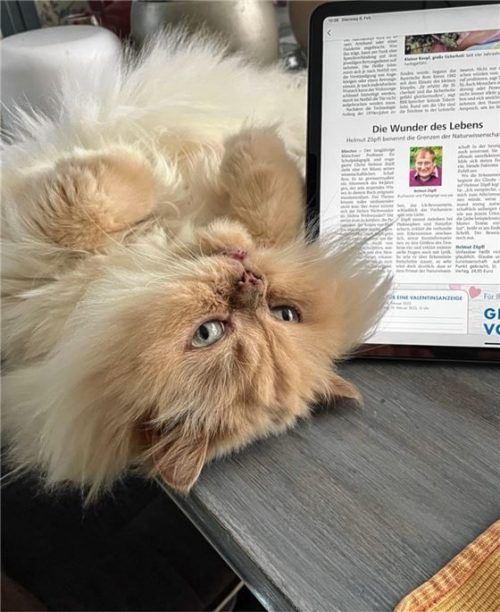 Leser-Reporterin Jutta Holzner aus Rosenheim hat ein Foto von ihrem Kater Bärli und der OVB Heimatzeitung während des Frühstücks gemacht. „Ein Beweis, dass er sich nicht mehr auf die Zeitung, sondern daneben legt, sodass ich trotzdem lesen kann.“ Ein wirklich schöner Start in den Morgen. Foto Holzne