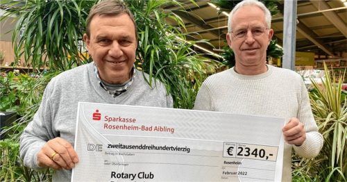 Zwei Paletten preisaufgehobener Bücher des Rosenheimer Verlagshauses lagen für eine Spendenaktion im Garten-Center Nickl aus. Der Umsatz des Verkaufs in Höhe von 2340 Euro geht als Spende an den Rotary-Club Rosenheim-Innenstadt, der damit Geschenke für einkommensschwache Familien besorgen kann. Stol
