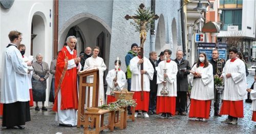 Stadtpfarrer Andreas Maria Zach feierte jetzt gemeinsam mit zahlreichen Gläubigen der Pfarrei St. Nikolaus die Palmweihe vor der Heilig-Geist-Kirche. Dort nahm er dann auch die Weihe der oft prachtvoll gestalteten Palmbuschen vor. Den geweihten Buschen misst man besondere Segenskräfte zur Abwehr von