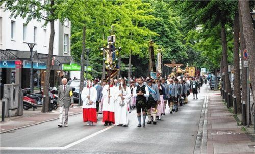 Ein feierlicher Gottesdienst samt Prozession prägte die zentrale Feier zum Rosenheimer Fronleichnamsfest gestern in der Innenstadt. Nach einer zwei Jahre langen pandemiebedingten Pause versammelten sich die Gläubigen diesmal nicht mehr auf dem Max-Josefs-Platz, sondern erstmals zwischen der Pfarrkir