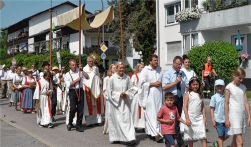 Nach zwei Jahren coronabedingter Pause war es der Stadtteilkirche Rosenheim-Inn nun möglich, ihr Fronleichnamsfest zu begehen. So zog jetzt von der Pfarrkirche St. Hedwig eine große Schar von Gläubigen der drei Pfarreien St. Hedwig, St. Nikolaus und Heilige Familie durch die Straßen, um mit dem Seel