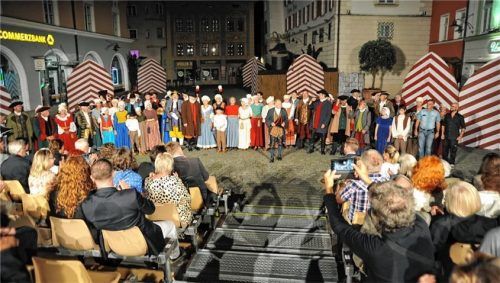 Rosenheim – Der Weg zum Rosenheimer Stadtspiel „Versöhnliches Ende – Streit der Zünfte“ war alles andere als leicht. Bis zuletzt wurden dem Theater Rosenheim Stolpersteine in den Weg gelegt. Umso größer die Erleichterung bei der Premiere am Samstagabend auf dem Ludwigsplatz – bei den rund 100 Akteur