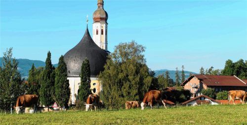Dorfweiher, Wirtshaus, landwirtschaftliche Betriebe, der Blick in die Alpenkette und vor allem die barocke Rundkirche St. Johann Baptist und Heilig Kreuz (siehe Bild) machen Westerndorf am Wasen aus, einen der noch immer ländlich geprägten Rosenheimer Stadtteile. Jede Jahreszeit hat hier ihre Vorzüg