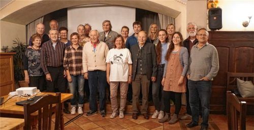 Beim Ehrenabend der langjährigen Mitglieder der DAV-Sektion Bergbund im Happinger Hof freute sich Vorsitzende Pia Lukas besonders, Gründungsmitglied Heinrich Koula (vorne, Vierter von links) einen Dank für 75 Jahre Vereinstreue aussprechen zu dürfen. Für langjährige und verdiente Mitgliedschaft wurd