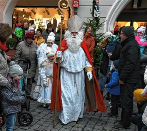 Große Aufregung herrschte gestern bei den kleinen Besuchern, als der Nikolaus auf dem Rosenheimer Christkindlmarkt eintraf. Er fuhr mit der Kutsche vor. In Begleitung von vier kleinen Engerl wurde er begeistert begrüßt. Mit größter Zurückhaltung begegneten die Kleinen aber dem Krampus. Organisiert w