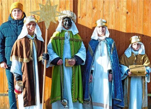Die Sternsinger und Sternträger aus dem Rosenheimer Stadtteil Westerndorf am Wasen sammeln Geld für die Partnergemeinde Yura in Bolivien. Das Geld soll dort vor allem zur Verbesserung der Schulen eingesetzt werden. Ebenfalls auf dem Bild zu sehen ist Begleiter Jacob Buys (links) aus Nicklheim.