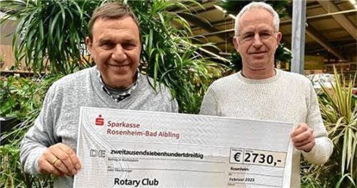 Das Rosenheimer Verlagshaus stellte zwei Paletten preisaufgehobene Bücher zur Verfügung, die im Garten Center Nickl verkauft wurden. Der gesamte Umsatz von 2730 Euro wurde dem Rotary Club Rosenheim-Innstadt gespendet, der dann einkommensschwache Familien unterstützte. Im Bild sind Klaus G. Förg (lin
