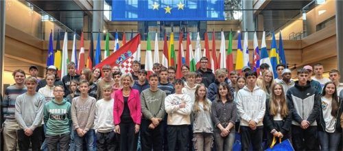 Die oberbayerische Europaabgeordnete Angelika Niebler (vorne) begrüßte 42 Schüler der Johann-Rieder-Realschule Rosenheim, die zu einem Besuch des Europäischen Parlamentes in Straßburg eingeladen waren. Begleitet von drei Lehrkräften hatte die Gruppe zunächst die Möglichkeit, an einer Plenarsitzung t