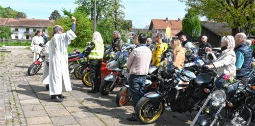 Über 40 Motorrad- und Rollerfahrer machten sich auf den Weg zur Zweiradweihe nach Fürstätt. Die 32. Motorradweihe der Griabigen Schnauferlfahrer vor der Rosenkranzkirche wurde von Diakon Erwin Brader durchgeführt. „Fahrt nie schneller als euer Schutzengel fliegen kann“, meinte er zur Weihe der mit b
